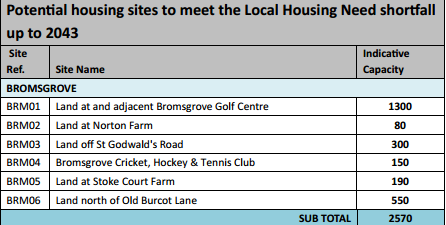 The proposals for Alvechurch should be compared to those for other areas in the district :